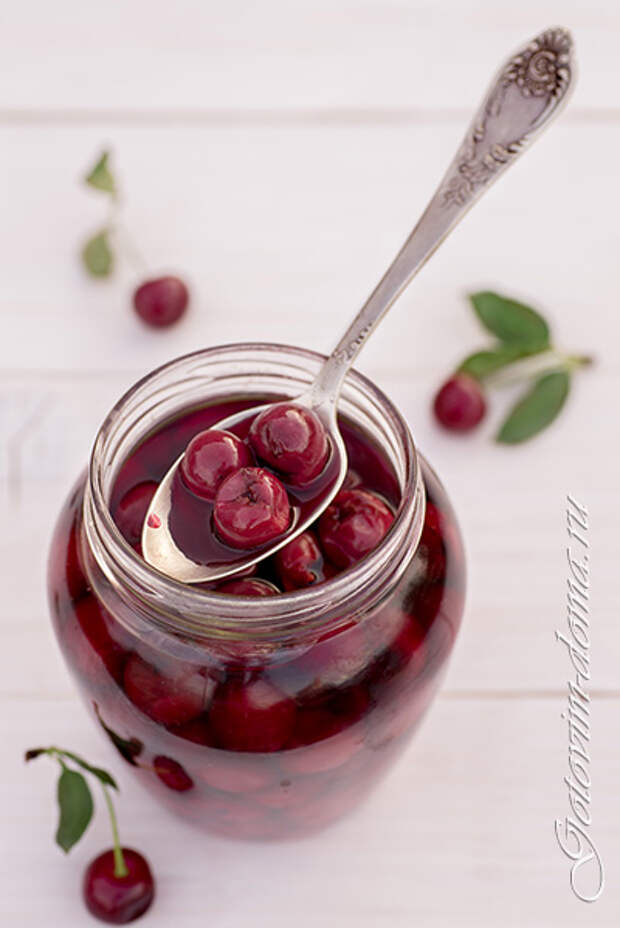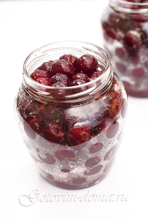 Совет. Если вишни малосочные, долейте немного кипятка, чтобы покрыть всю вишню жидкостью. Если вишни сочные - в этом нет необходимости, они сами отдадут много сока.