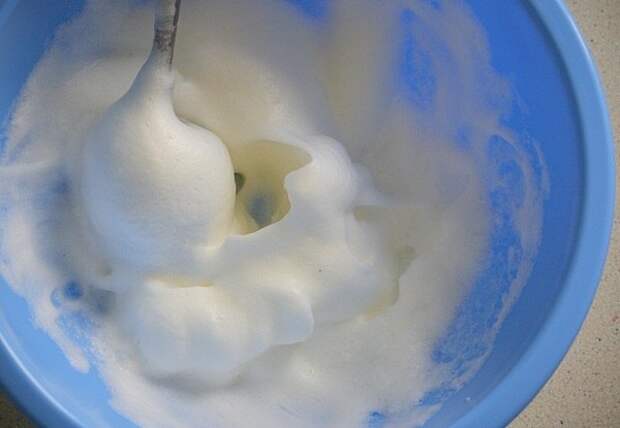 4. Охлаждённые белки взбиваем до крутых пиков.