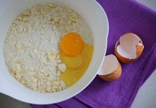 1. 1,5 стакана муки рубим со сливочным маслом в мелкую крошку.