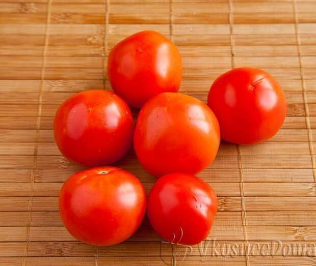 Помидоры моем и разрезаем на половинки или четвертинки.