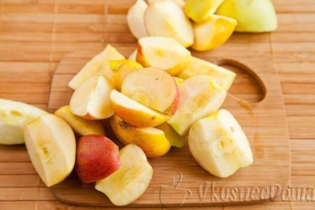 У яблок вырезаем сердцевинку и разрезаем на части.