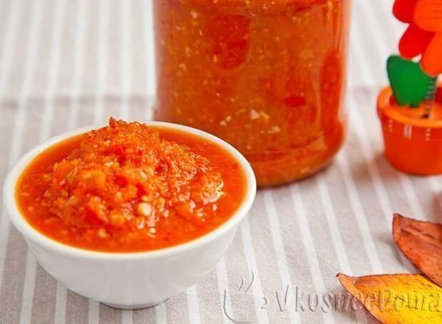 Аджика на зиму вареная – рецепт очень вкусный и практичный. Подходит зимой абсолютно к любому блюду: мясо, рис, спагетти, картошка… За счет яблок и морковки – имеет определенную сладость и не сильно острая. Можно этот рецепт еще назвать – аджика с яблоками на зиму.